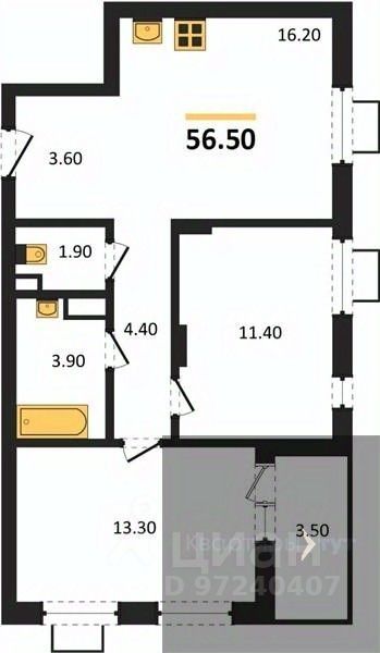 56,5 м²