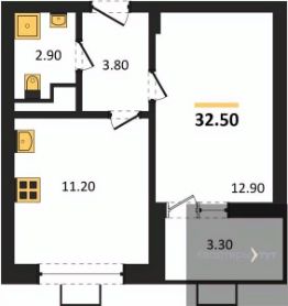Квартира: 1 к 32,50 кв.м., 11 этаж в комплексе Ключи CLUB, 3 очередь, корп.3, сдача: 3кв. , этажей: 14, адрес Воронеж г., Остужева ул., д. 52/5, Застройщик: Новый код.