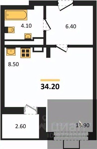 Студия: 34,20 кв.м., 6 этаж в комплексе Ключи CLUB, 3 очередь, корп.3, сдача: 3кв. , этажей: 14, адрес Воронеж г., Остужева ул., д. 52/5, Застройщик: Новый код.