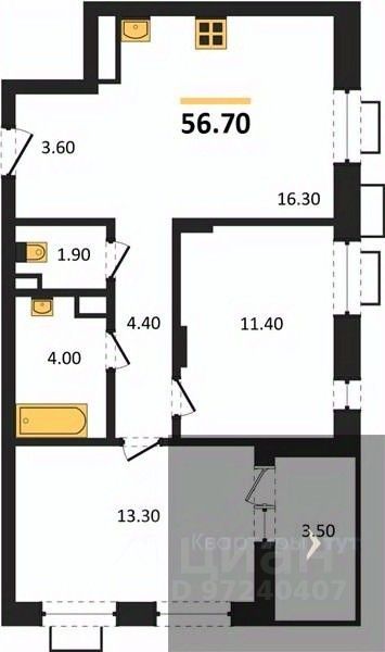 Квартира: 2 к 56,70 кв.м., 2 этаж в комплексе Ключи CLUB, 3 очередь, корп.3, сдача: 3кв. , этажей: 14, адрес Воронеж г., Остужева ул., д. 52/5, Застройщик: Новый код.