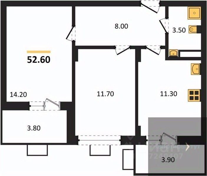 Квартира: 2 к 52,60 кв.м., 1 этаж в комплексе Ключи CLUB, 3 очередь, корп.3, сдача: 3кв. , этажей: 14, адрес Воронеж г., Остужева ул., д. 52/5, Застройщик: Новый код.