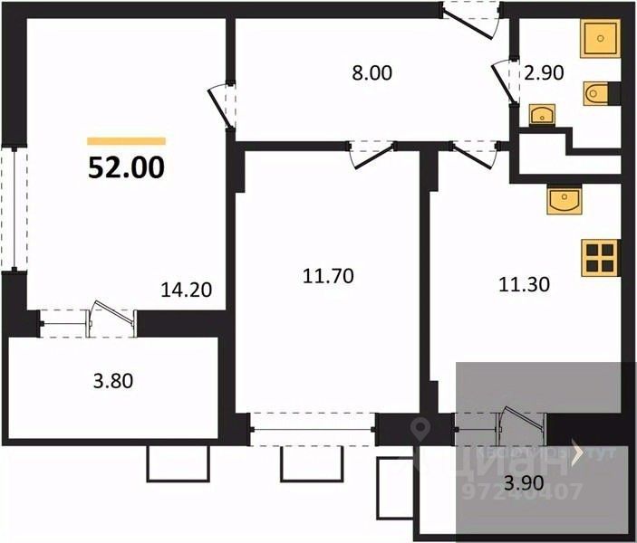 52 м²