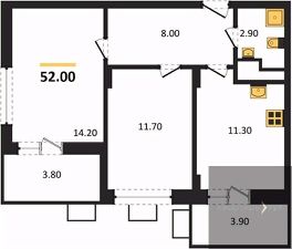 Квартира: 2 к 52,00 кв.м., 13 этаж в комплексе Ключи CLUB, 3 очередь, корп.3, сдача: 3кв. , этажей: 14, адрес Воронеж г., Остужева ул., д. 52/5, Застройщик: Новый код.
