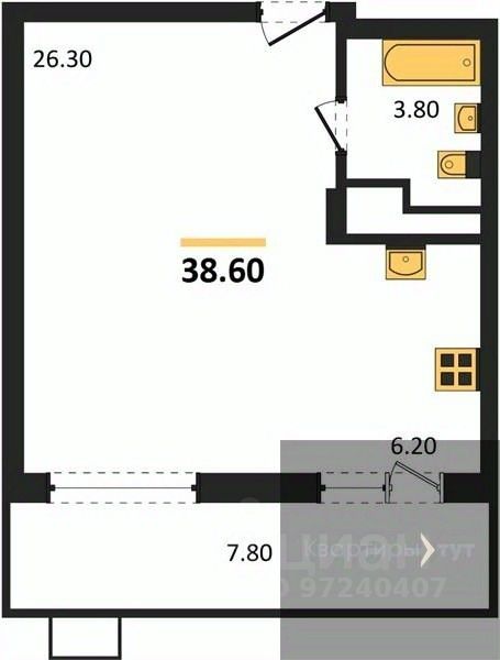 Студия: 38,60 кв.м., 14 этаж в комплексе Ключи CLUB, 3 очередь, корп.3, сдача: 3кв. , этажей: 14, адрес Воронеж г., Остужева ул., д. 52/5, Застройщик: Новый код.