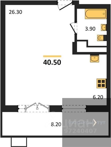 Студия: 40,50 кв.м., 9 этаж в комплексе Ключи CLUB, 3 очередь, корп.3, сдача: 3кв. , этажей: 14, адрес Воронеж г., Остужева ул., д. 52/5, Застройщик: Новый код.
