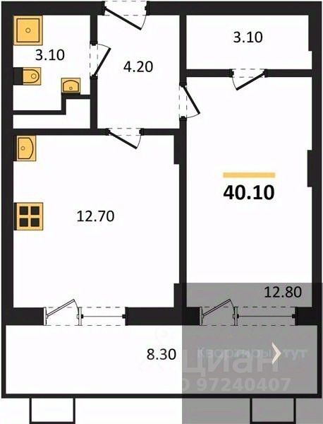 Квартира: 1 к 40,10 кв.м., 4 этаж в комплексе Ключи CLUB, 3 очередь, корп.3, сдача: 3кв. , этажей: 14, адрес Воронеж г., Остужева ул., д. 52/5, Застройщик: Новый код.