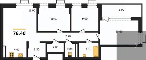 76,4 м²
