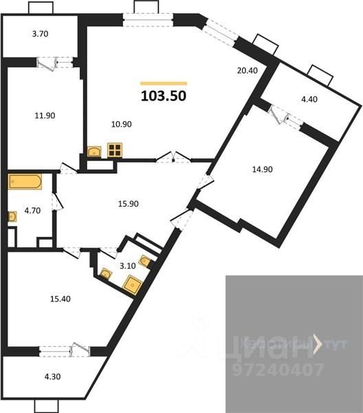 Квартира: 3 к 103,50 кв.м., 3 этаж в комплексе Ключи CLUB, 3 очередь, корп.3, сдача: 3кв. , этажей: 14, адрес Воронеж г., Остужева ул., д. 52/5, Застройщик: Новый код.