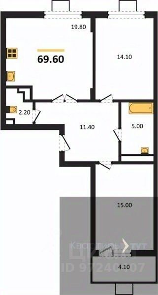 Квартира: 2 к 69,60 кв.м., 7 этаж в комплексе Ключи CLUB, 3 очередь, корп.3, сдача: 3кв. , этажей: 14, адрес Воронеж г., Остужева ул., д. 52/5, Застройщик: Новый код.