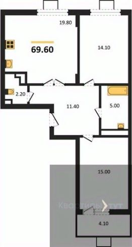 Квартира: 2 к 69,60 кв.м., 10 этаж в комплексе Ключи CLUB, 3 очередь, корп.3, сдача: 3кв. , этажей: 14, адрес Воронеж г., Остужева ул., д. 52/5, Застройщик: Новый код.