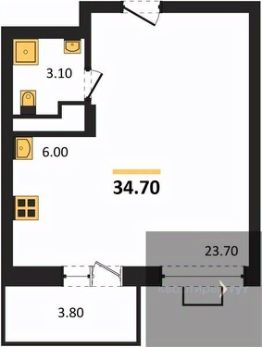 Студия: 34,70 кв.м., 4 этаж в комплексе Ключи CLUB, 3 очередь, корп.3, сдача: 3кв. , этажей: 14, адрес Воронеж г., Остужева ул., д. 52/5, Застройщик: Новый код.