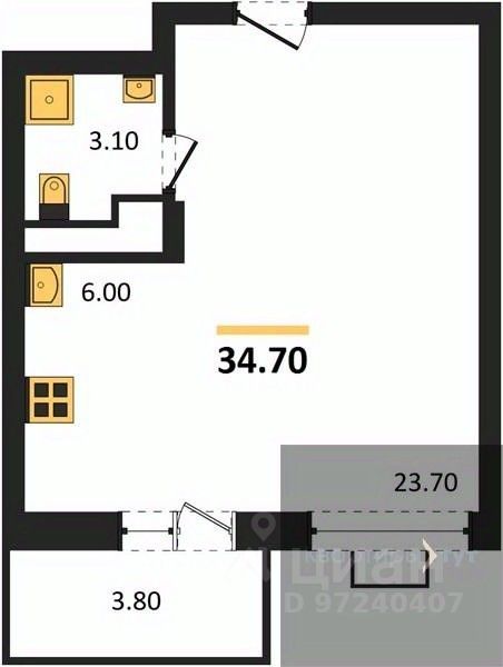 Студия: 34,70 кв.м., 6 этаж в комплексе Ключи CLUB, 3 очередь, корп.3, сдача: 3кв. , этажей: 14, адрес Воронеж г., Остужева ул., д. 52/5, Застройщик: Новый код.