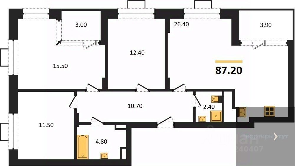 Квартира: 3 к 87,20 кв.м., 4 этаж в комплексе Ключи CLUB, 3 очередь, корп.3, сдача: 3кв. , этажей: 14, адрес Воронеж г., Остужева ул., д. 52/5, Застройщик: Новый код.