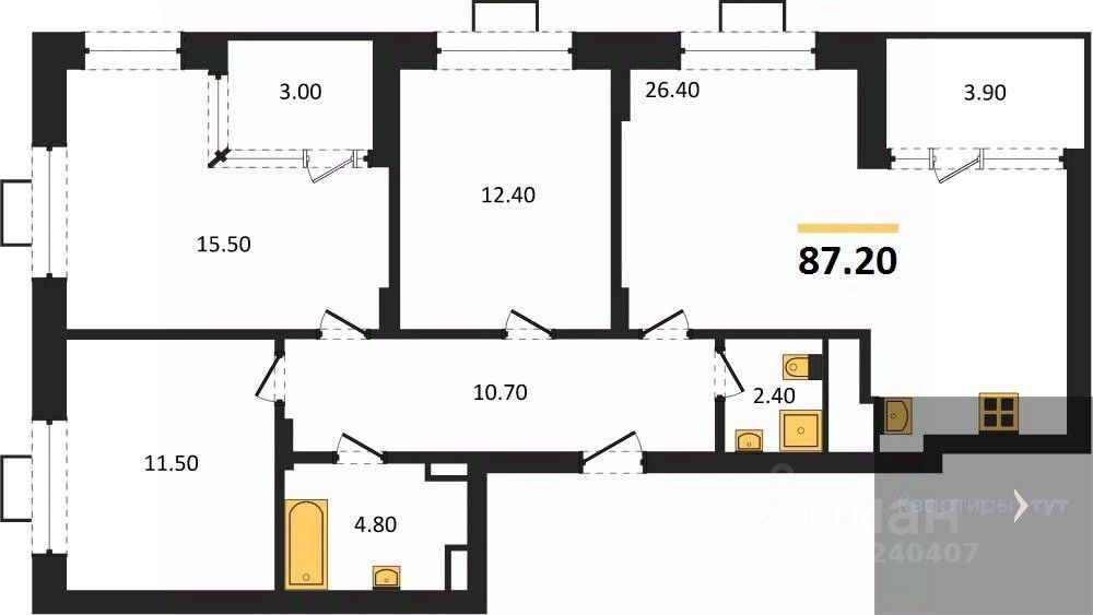 Квартира: 3 к 87,20 кв.м., 5 этаж в комплексе Ключи CLUB, 3 очередь, корп.3, сдача: 3кв. , этажей: 14, адрес Воронеж г., Остужева ул., д. 52/5, Застройщик: Новый код.