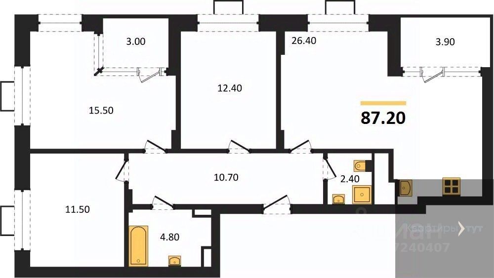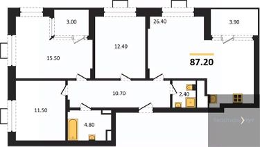 Квартира: 3 к 87,20 кв.м., 10 этаж в комплексе Ключи CLUB, 3 очередь, корп.3, сдача: 3кв. , этажей: 14, адрес Воронеж г., Остужева ул., д. 52/5, Застройщик: Новый код.