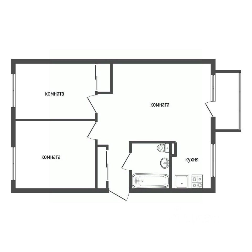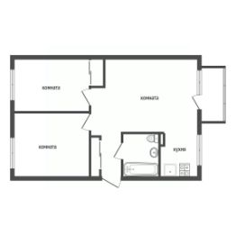 Планировка квартиры практична и функциональна: три комнаты, совмещенный санузел и кухня площадью 10 кв. м.
