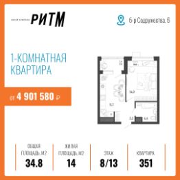 ЖК "РИТМ" — ДОСТУПНАЯ И ВЫГОДНАЯ ИНВЕСТИЦИЯ В ВАШЕ БУДУЩЕЕ Жилой комплекс "Ритм" по ул. Бульвар Содружества уч. 6 — часть масштабного проекта развития территории воронежского левобережья — микрорайона "Ключи", который займет 28,6 га недалеко от въезда в город по тамбовскому направлению. Здесь строится инновационный красивый мини-город. Он насыщен социальной и коммерческой инфраструктурой и обеспечен новейшими коммуникациями. Комплекс состоит не только из качественных домов. Решения по благоустройству стимулируют ведение активного здорового образа жизни. Продуманы возможности для взаимодействия людей, их творческой самореализации, выстраивания добрососедских связей и формирования современного приятного комьюнити. И все это на благоприятном экологическом фоне. Это действительно новый шаг в создании привлекательной среды для жизни в современном ритме! Жить, не ограничивая себя и свою семью, — разве не об этом вы мечтали? Вас ждет инновационное пространство, где вы будете вести свою насыщенную и интересную жизнь в выбранном вами ритме. Подземный паркинг на -1 этаже вместимостью на 114 машино-места, в том числе семейные парковки на два автомобиля освобождает двор от машин — там гораздо приятнее гулять с детьми или заниматься спортом. Жители смогут выходить к своему автомобилю в теплый паркинг прямо из лифта — нет беспокойства из-за погодных условий или за сохранность транспортного средства. Ваши гости тоже не останутся без парковки — на придомовой территории организовано - 131 место и вне придомовой территории - 213 мест. Для абсолютного комфорта на -1 этаже в каждой секции расположены кладовые помещение площадью от 2,10 до 5,0 кв.м., где можно хранить все что угодно — велосипеды, санки, лыжи и прочие вещи. Они больше не будут занимать весь балкон. Там гораздо приятнее пить кофе и любоваться видом из окна. ИНФРАСТРУКТУРА и ПРЕИМУЩЕСТВА Инновационное жилье в ЖК "Ритм" совсем рядом — 5 минут до Остужевского кольца, 20 минут до центра, рядом новая транспортная развязка. Легко добраться до работы и вузов, на концерт или в гости. Первый цифровой квартал в городе Дворы без машин Подземный паркинг и кладовые (в каждой секции) Сервисная Управляющая Компания (Smile) Новая инфраструктура района и коммуникаций Рядом с вами: новая уже действующая школа - 3 минут (просто перейти дорогу) новый детский сад (проект на стадии разработки, ориентировочный срок сдачи конец 2026 года) - 5 минут (просто перейти дорогу) 5 минут от центральной площади событий и прогулочных аллей стадион и спортивные площадки поликлиника (проект на стадии разработки) магазины аптеки детские площадки
