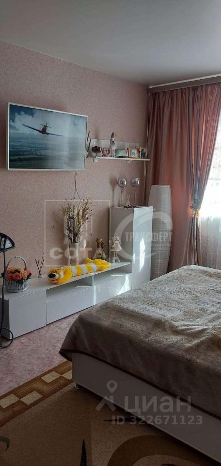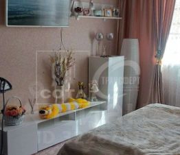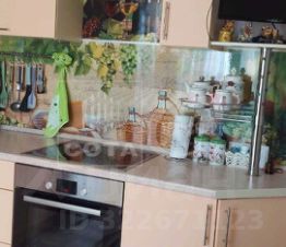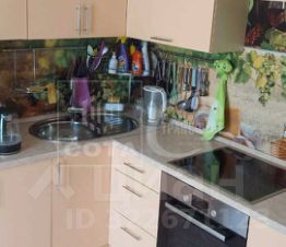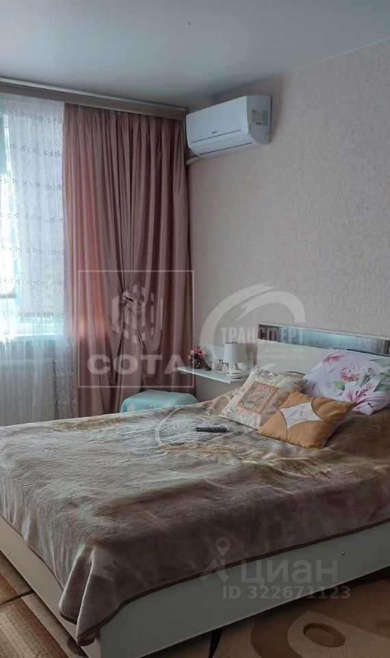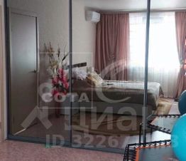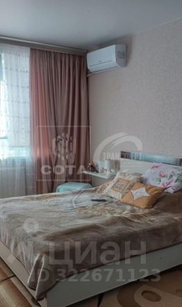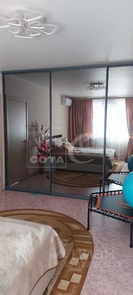 В комнате имеется система хранения шкаф-купе с зеркальными дверьми, двухспальная кровать, кондиционер. Также останется кухонный гарнитур и варочная панель.