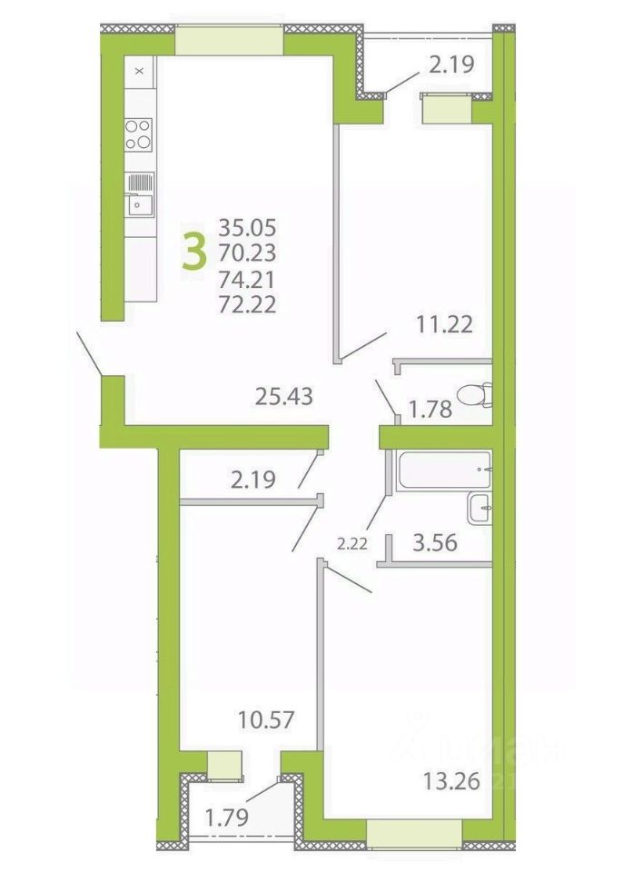 Продаётся 3-комнатная квартира в сданном доме (Поз. 3 (1 очередь), 9 этап), срок сдачи: III-кв. 2024, общей площадью 72.22 кв.м., на 2 этаже. Новый жилой комплекс "Славяноград" от Специализированного застройщика "ЖБИ-ЖИЛСТРОЙ 36" расположен в г. Семилуки Воронежской области на ул. Маяковского.