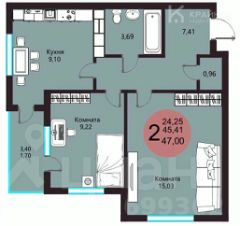Квартира с лаконичной продуманной планировкой - изолированные комнаты, просторная кухня, отдельная гардеробная, большой совмещенный санузел, квадратный холл - все удобно размещено на площади 47.1 кв.м.