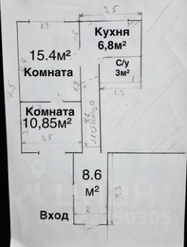 - комнаты 15,4м² и 10,85 м² на две стороны