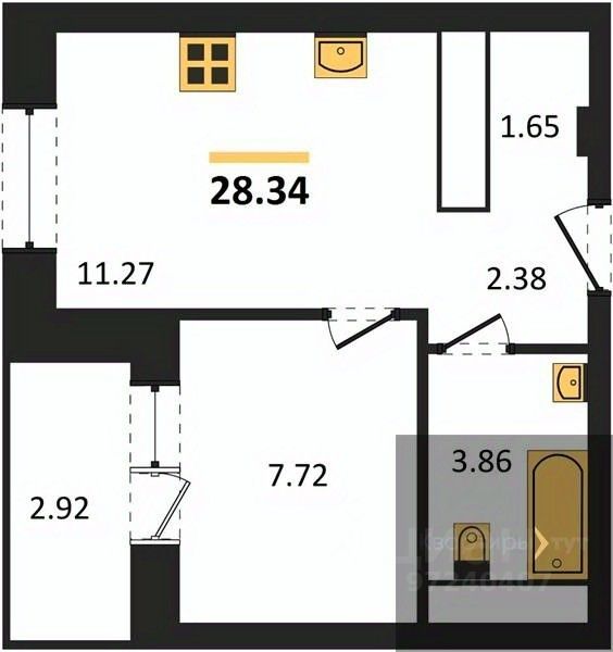 Квартира: 1 к 28,34 кв.м., 19 этаж в комплексе Галилей, 1 очередь, корп.2, сдача: 3кв. , этажей: 25, адрес Воронеж г., Кривошеина ул., д. 13/14, Застройщик: ГК Крайс.