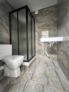 — Санузел полностью готов: современная плитка, новая сантехника, душ, раковина и унитаз — можно заехать без лишних вложений.