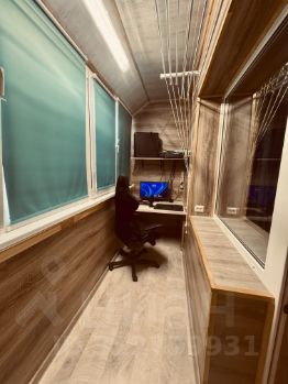 - Лоджия переоборудована в стильный и функциональный кабинет с тёплым полом и просторным рабочим столом.