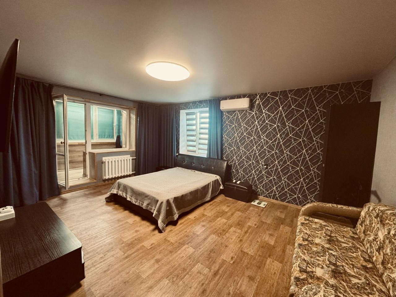- Современный инверторный кондиционер: охлаждает летом, греет зимой, входная дверь высокого класса — с хорошей шумоизоляцией.