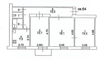 Квартира, 3 комнаты, общая площадь 73 кв.м., этаж 3, расположенная по адресу: Россия, 394018, Воронежская обл., г. Воронеж, ул. Фридриха Энгельса, д. 39, кв. 64, кадастровый номер 36:34:0401032:164