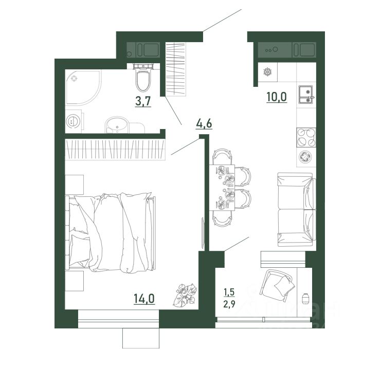 Жилая площадь14 м²