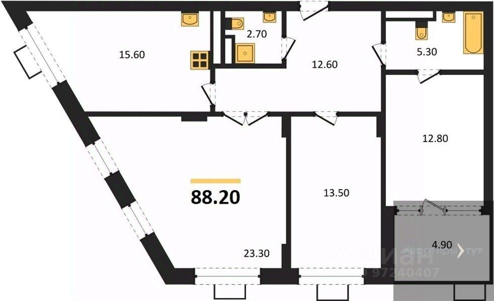Квартира: 3 к 88,20 кв.м., 8 этаж в комплексе Ключи CLUB, 2 очередь, корп.2, сдача: 2кв. , этажей: 14, адрес Воронеж г., Остужева ул., д. 52/5, Застройщик: Новый код.