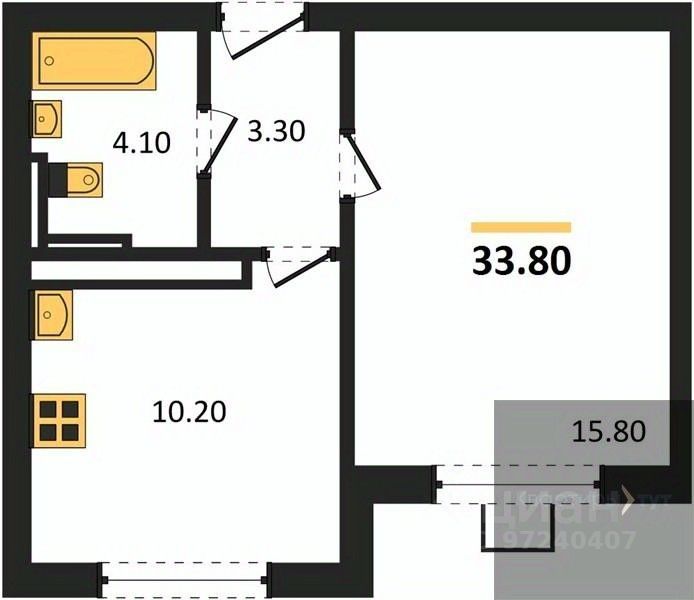 Квартира: 1 к 33,80 кв.м., 2 этаж в комплексе Яблоневые сады, 1 очередь, корп.14.2, сдача: 3кв. , этажей: 17, адрес Воронеж г., Загоровского ул., , Застройщик: ВЫБОР.
