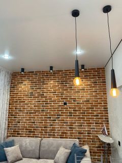 Стены отделаны декоративной штукатуркой и оригинальной кирпичной кладкой ручной работы.