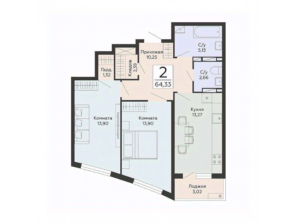 В продаже квартира площадью 64.33 кв. м черновая отделка. Квартира расположена на 8 этаже 13 этажного дома, в жилом комплексе комфорт-класса "Мармелад" (Федеральный застройщик - ГК "Развитие").