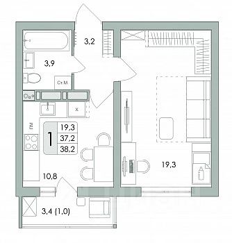 Продаётся 1-комнатная квартира в строящемся доме (Позиция 49), срок сдачи: IV-кв. 2025, общей площадью 38.2 кв.м., на 16 этаже. Расположение, транспортная доступность