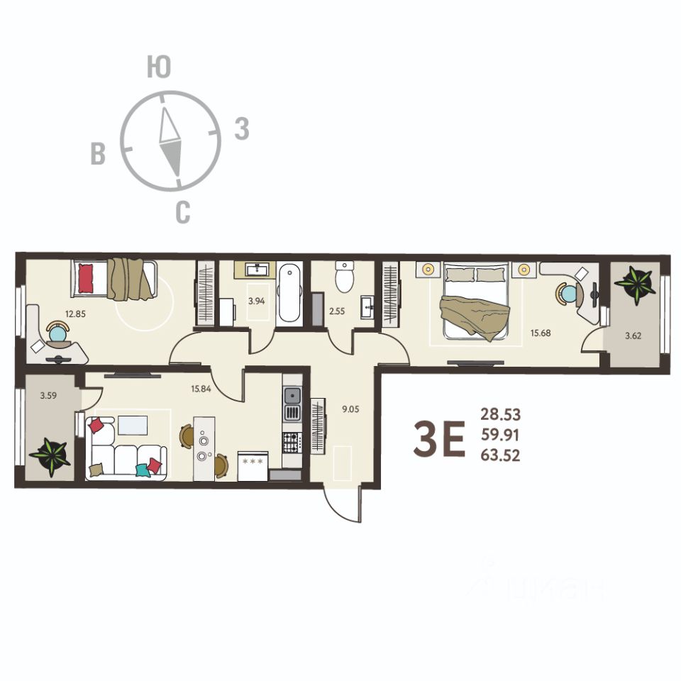 Продаётся 2-комнатная квартира в строящемся доме (Позиция 13), срок сдачи: IV-кв. 2025, общей площадью 63.52 кв.м., на 9 этаже. О ПРОЕКТЕ