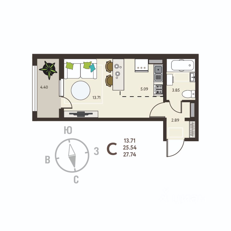 Продаётся студия в строящемся доме (Позиция 13), срок сдачи: IV-кв. 2025, общей площадью 27.74 кв.м., на 4 этаже. О ПРОЕКТЕ