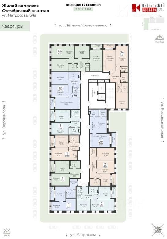 ЖК расположен на ул. Матросова, 64а — в районе, стремительно меняющем свой облик. Уже сейчас открылась новая школа 108, а совсем скоро начнется строительство детского сада на территории жилого комплекса. Здесь проходит большое количество маршрутов общественного транспорта, что обеспечивает комфортный доступ в любую точку города. На автомобиле время в пути до центральной части города займет около 15 минут.