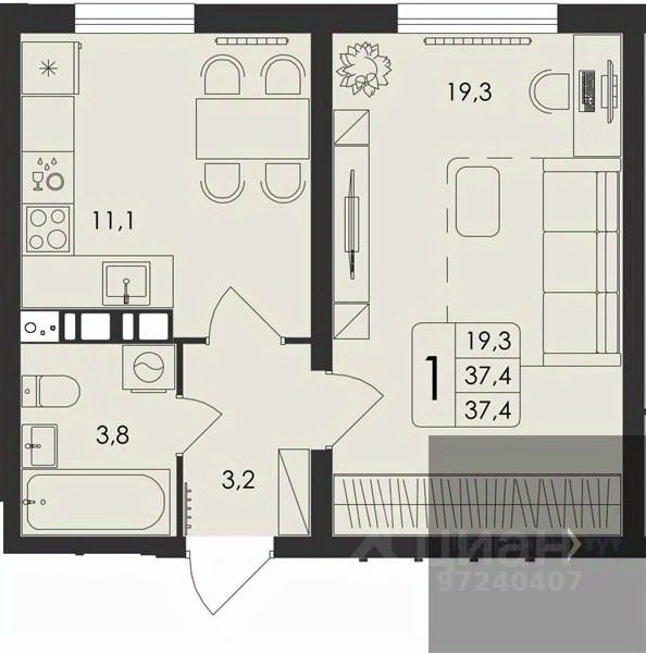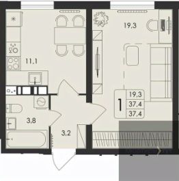Квартира: 1 к 37,40 кв.м., 1 этаж в комплексе Счастье, 2 очередь, корп.18, сдача: 4кв. , этажей: 7, адрес Ямное село, Проселочная ул., д. 2 к 5, Застройщик: ВЫБОР.