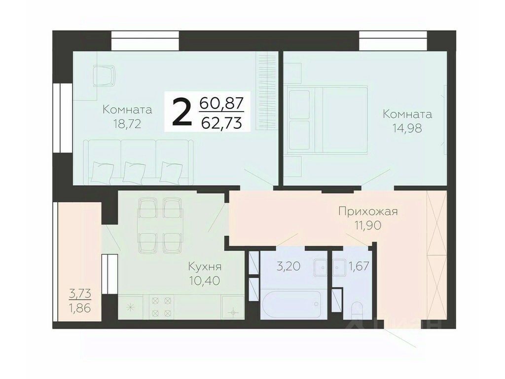 В продаже квартира площадью 62.73 кв. м с отделкой. Квартира расположена на 18 этаже 18 этажного дома, в жилом комплексе комфорт-класса "Галактика 2|3".