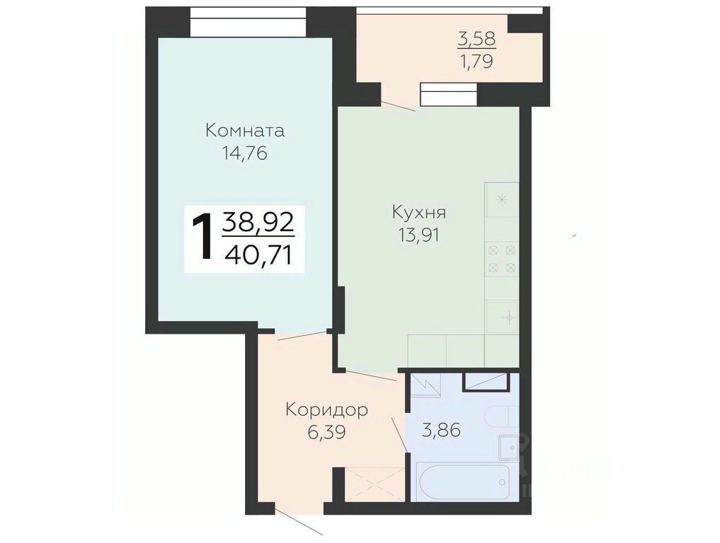 В продаже квартира площадью 40.71 кв. м с черновой отделкой. Квартира расположена на 19 этаже 23 этажного дома, в новом микрорайоне комфорт-класса "Зарядье" (Девелопер - ГК "Развитие").
