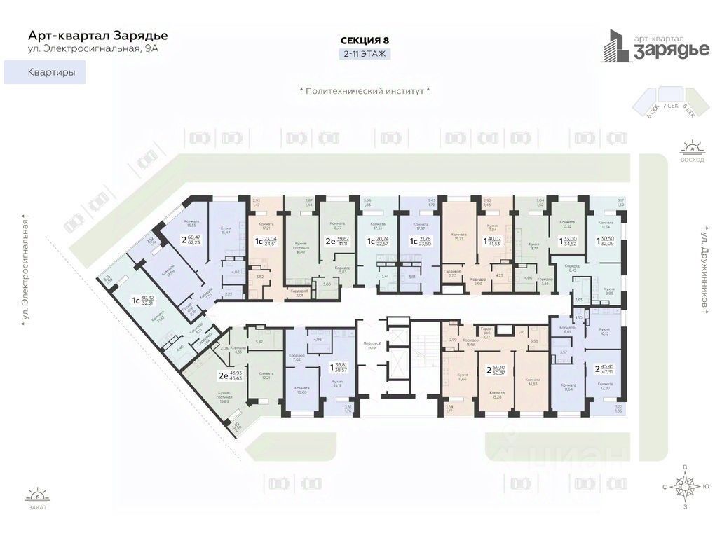 Арт-квартал "Зарядье" - новый центр притяжения Коминтерновского района. Проект состоит из трех зданий переменной этажности, соединенных единым двором-парком, также он оснащен просторным подземным паркингом. Это уникальный квартал, в котором превосходная транспортная доступность, современная инфраструктура, сочетаются безупречные цветовые решения и эксклюзивные форматы квартир.