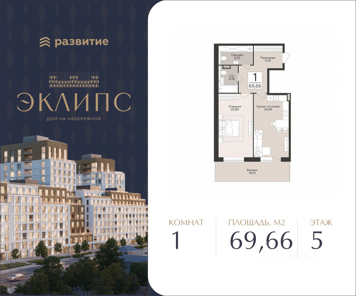 В жилом доме, расположенном в историческом центре на первой линии реки Воронеж, продается 1-комнатная квартира площадью 69.66 кв. м с черновой отделкой. Квартира расположена на 5 этаже жилого дома бизнес-класса "Эклипс" от федерального застройщика ГК "Развитие".