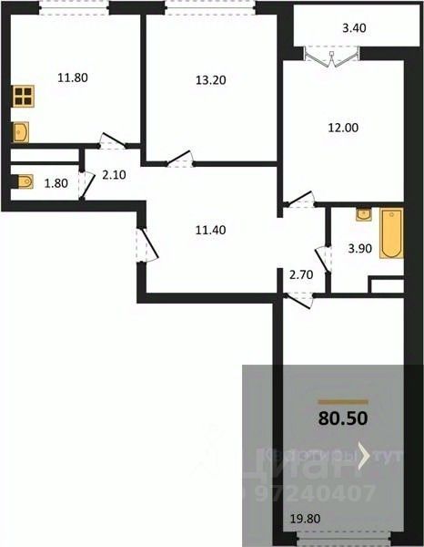 Общая площадь80,5 м²
