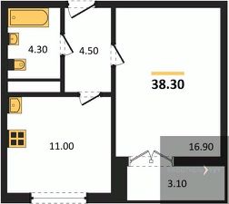 Квартира: 1 к 38,30 кв.м., 9 этаж в комплексе Черемушки, 3 очередь, корп.2 (3 квартал), сдача: 4кв. , этажей: 16, адрес Отрадное п., Весенняя ул., , Застройщик: ДСК.