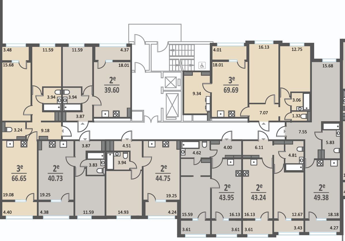 Вход в подъезды с уровня земли. Улучшенная отделка подъездов и межквартирных коридоров по дизайн-проекту. Установлены лифты Метеор (экс-OTIS) с индивидуальным дизайном. В каждом подъезде на первом этаже расположены колясочные и санузлы.