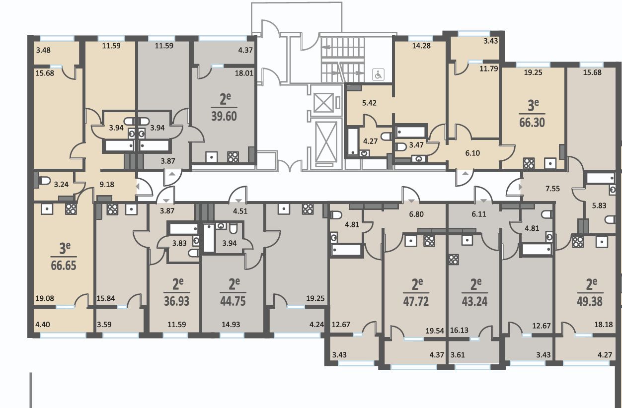 Вход в подъезды с уровня земли. Улучшенная отделка подъездов и межквартирных коридоров по дизайн-проекту. Установлены лифты Метеор (экс-OTIS) с индивидуальным дизайном. В каждом подъезде на первом этаже расположены колясочные и санузлы.