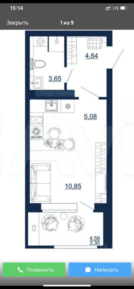 Студия, 26,5 м²