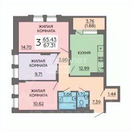 ТРЕХКОМНАТНЫЕ - квартиры, где каждый член семьи найдет свое место для уединения от 65.87 до 92.77 кв.м.